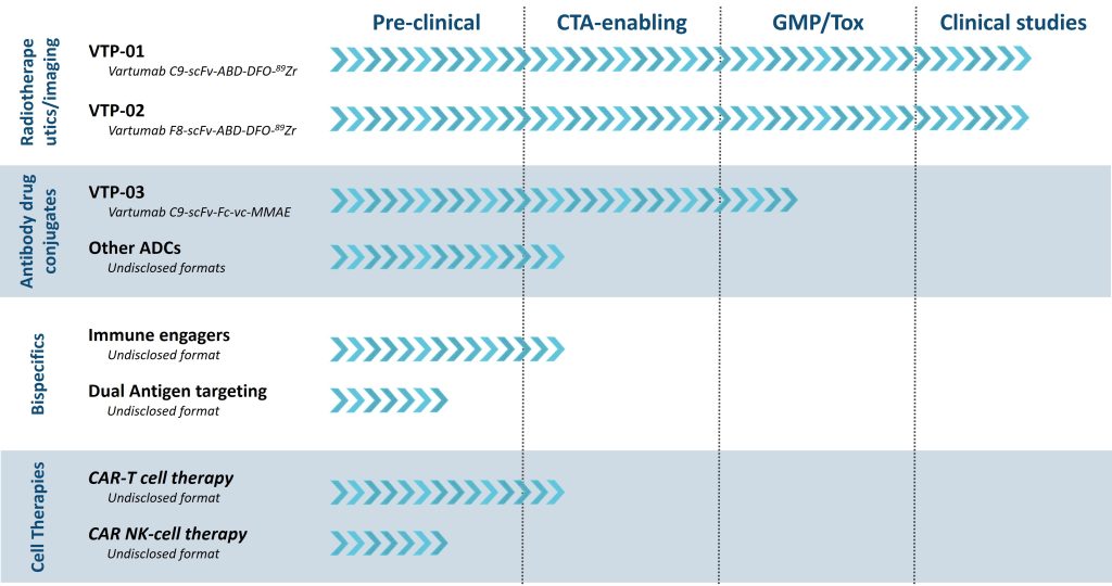 We have compiled an extensive pre-clinical data package showing efficacy and safety of Vartumabs as antibody drug conjugates, bispecifics and cell therapies.
